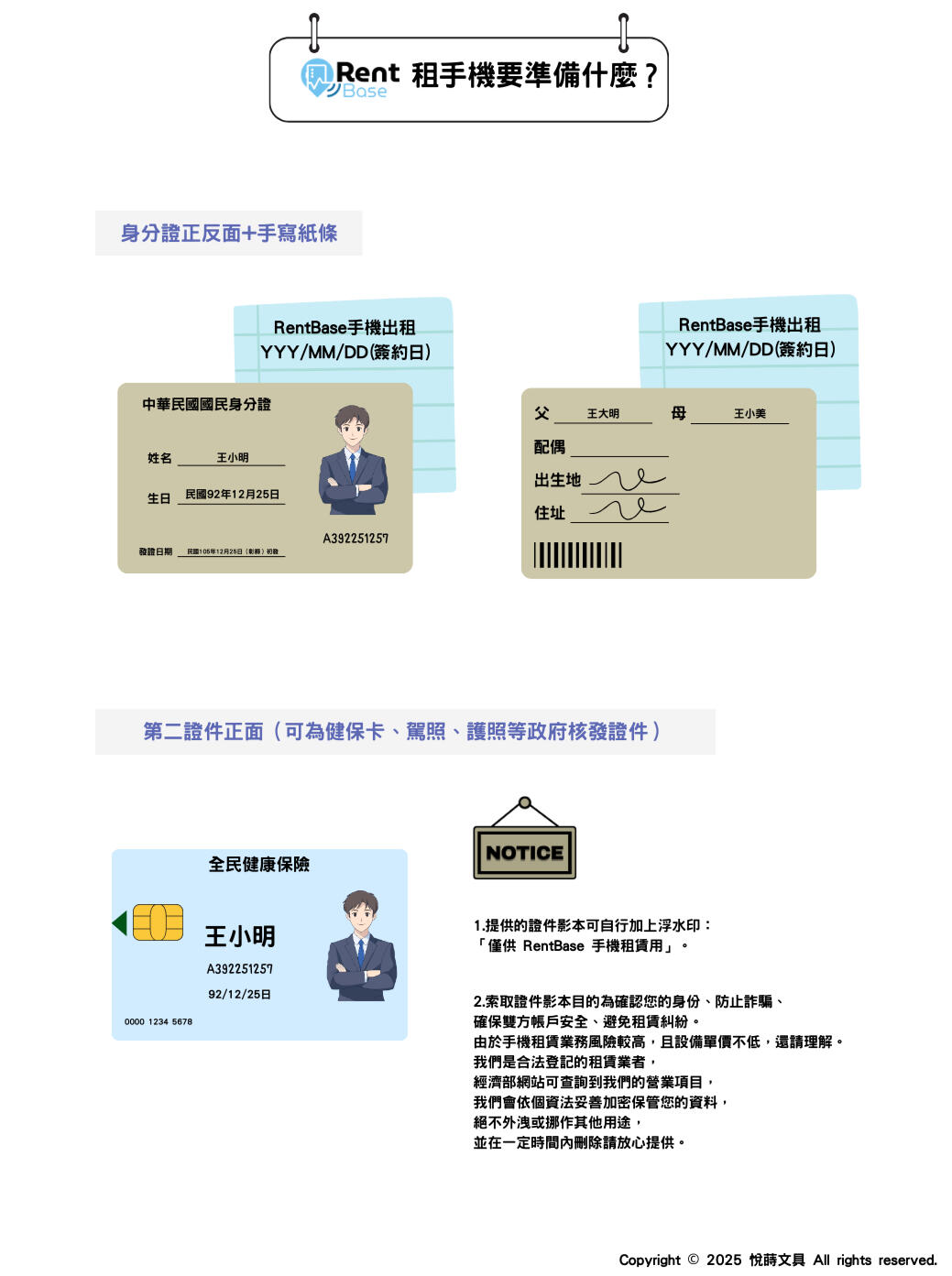 RentBase是一個成立於 2025 年的服務品牌,由一群曾服務於相關資訊硬體產業並且想提升手機租借體驗的新創團隊組成,致力於打造台灣最可靠、透明又方便的硬體租賃解決方案。我們成立的初衷是因為發現目前市面上許多手機租借規則繁瑣、需押證件給陌生人、沒有合約保障權益等問題,讓許多有需求的人無法安心借用高階設備。更不用說,市面上多數都是個人在經營,依賴社群平台、缺乏統一規則,甚至突然手機出狀況無法調度。我們決定將服務「品牌化、公司化、規模化」,讓租借流程趨近一致,營業資訊公開透明,租金也會開立發票,此外,我們也建立了內部的租賃管理系統,能有效追蹤每筆租期與檔期安排。系統會在租期前自動提醒,讓我們能提前與客戶確認交付方式與需求,即使是半年後的檔期,也能做好準備,確保每一次租借都順暢無誤。RentBase重視服務品質及商譽,我們也有多種型號選擇,例如這次租借 S 系列,下次也能體驗 X 系列,我們同一型號都有多支手機,無需擔心臨時沒設備可用。RentBase的設備都是專門用於租借的,閒置時都放在防潮箱內保存,我們也會定期清潔與汰換設備,如此更能確保所有設備的壽命與穩定。無論演唱會、旅遊、拍片備機,或短期替代手機,RentBase 都希望成為你最好的選擇。